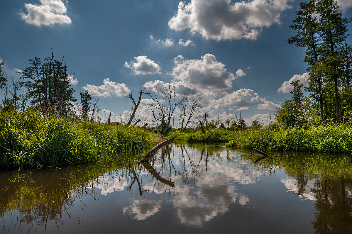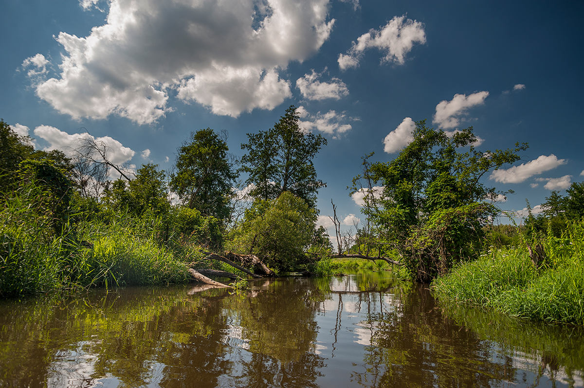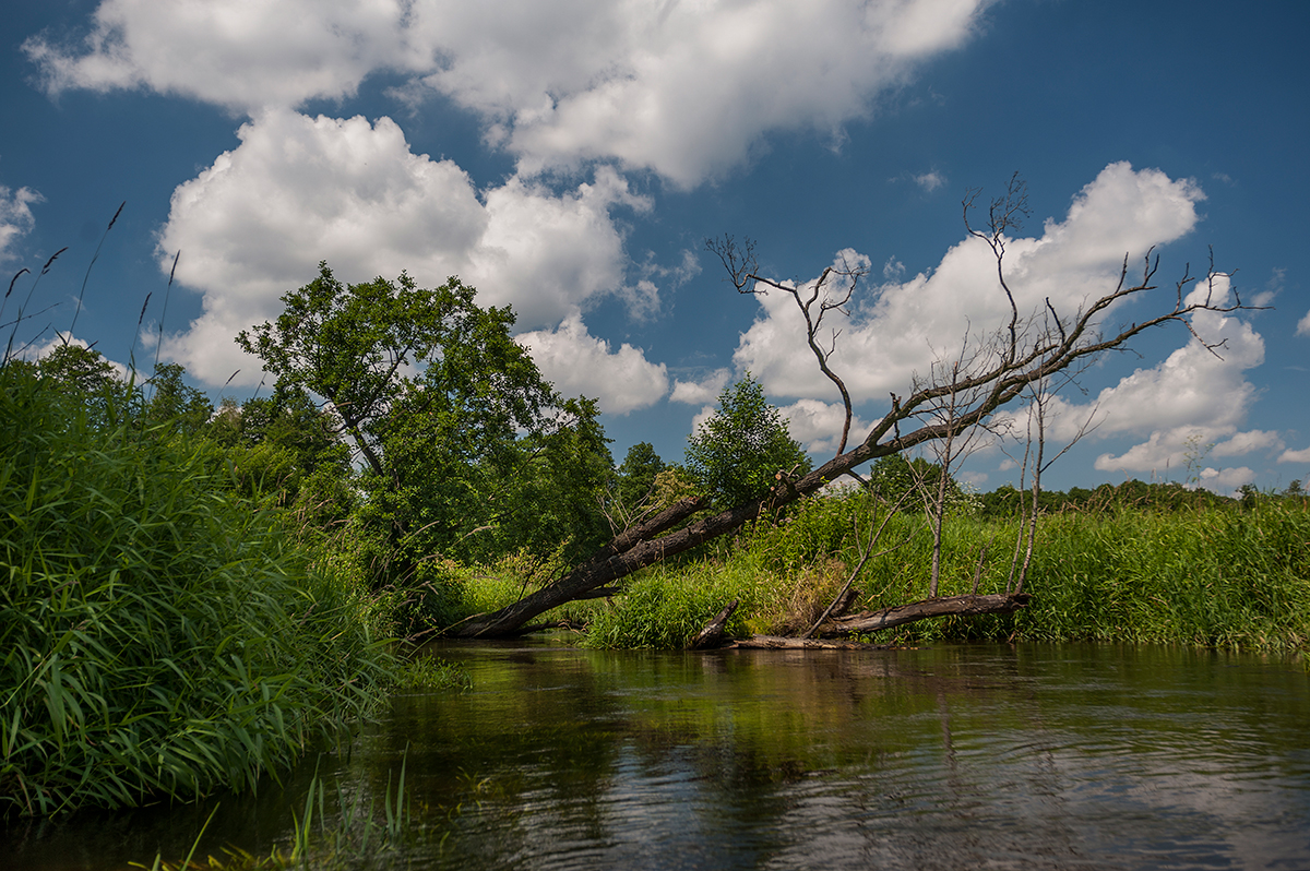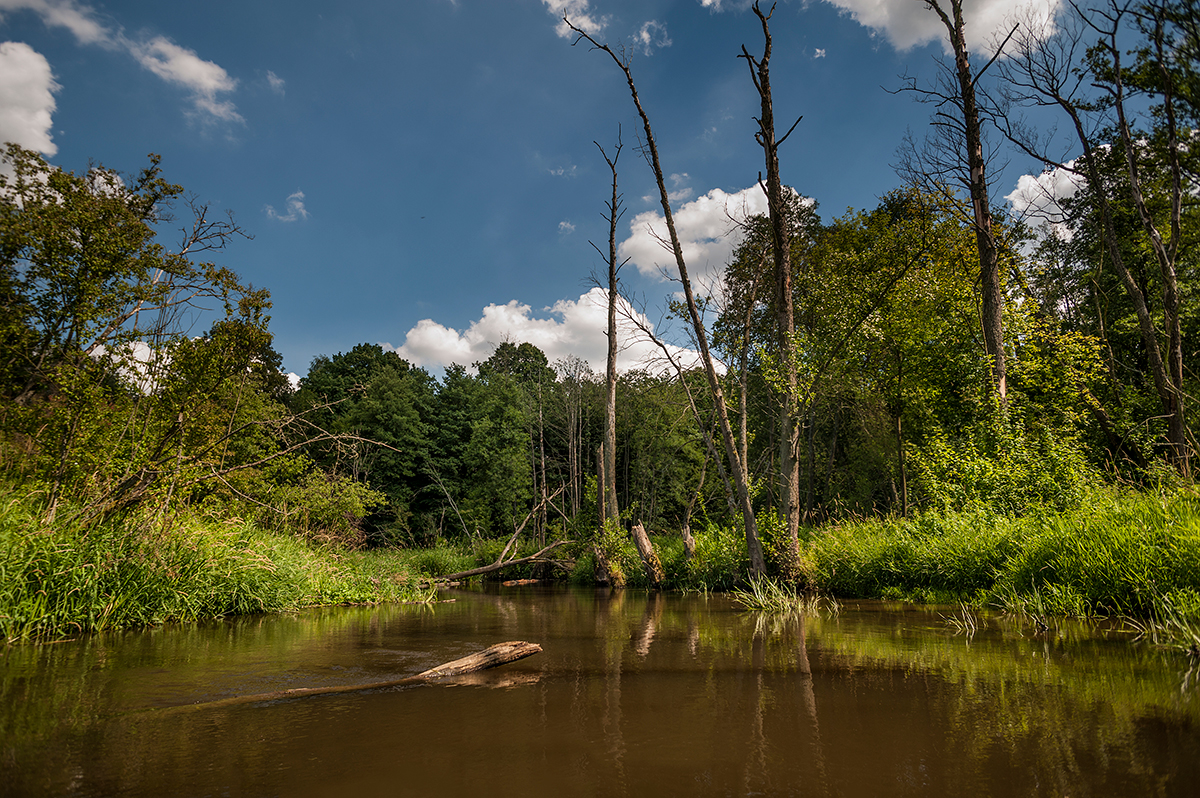Wyruszyliśmy po godz. 8 rano spod starego młynu na Rawce. Pierwsze kilometry udało nam się pokonać bez większych trudności. Schody zaczęły się dopiero na odcinku 4-5. Niski poziom wody odsłonił zatopione wcześniej konary powalonych drzew. Dwa lata wcześniej odcinek ten pokonać można było bez wysiłku jednak teraz było to nie lada wyzwanie