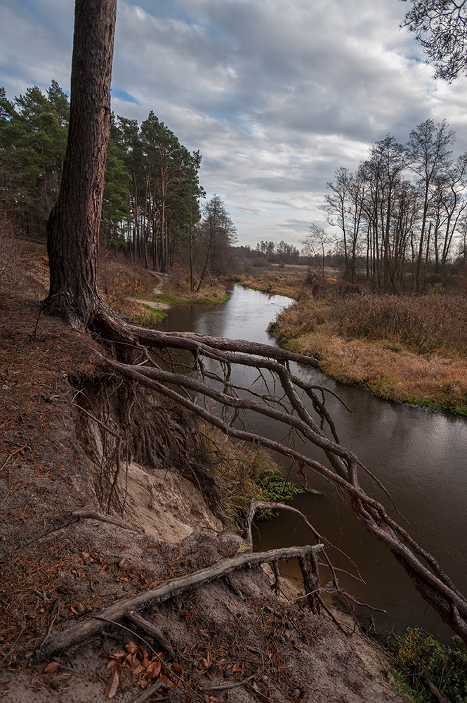 Dodatkowo kilka zdjęć z zakola Rawki w Wycześniaku (jesień 2020r). Jeszcze 25 lat temu koryto rzeki biegło za widoczną wyspą a na nią samą można było dostać się wąskim przejściem między brzegami. Pamiętam nocne biwakowania na niej, cichy szum płynącej wody, odgłosy bobrów w niedalekiej żeremi i poranny śpiew ptaków…