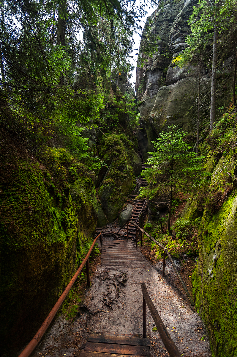 Miejsca znane lub mniej znane niektórym z Was. Znane chociażby stąd iż posłużyło filmowcom z Hollywood za plan filmowy podczas ekranizacji powieści fantasy C.S. Lewisa oraz przemknęło w kilku scenach w Opowieściach z Narni. Same skały to unikalne bloki piaskowcowe powstałe, podobnie jak pasmo Gór Stołowych w wyniku nierównej odporności skał na wietrzenie, które wymodelowała woda, mróz i wiatr 🙂 Najbardziej niesamowite w historii tego fantazyjnego miejsca jest to, że Skalne Miasto, jako atrakcja turystyczna jest powszechnie dostępna dopiero od ponad 200 lat. Pożar, który trwał kilka tygodni i strawiwszy tutejszą leśną roślinność w 1824 r. odsłonił wówczas wszystkie skalne labirynty a co za tym idzie uruchomił też ludzką wyobraźnię. ??